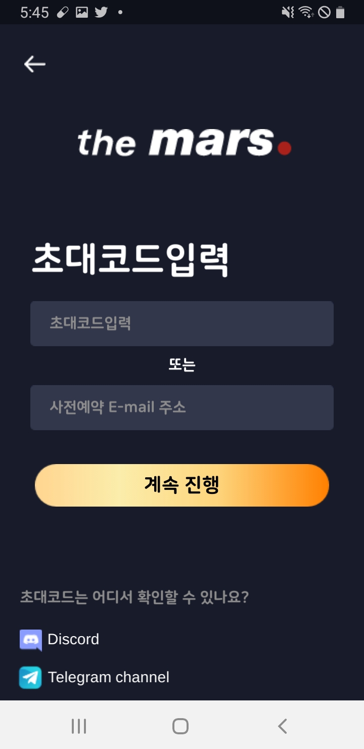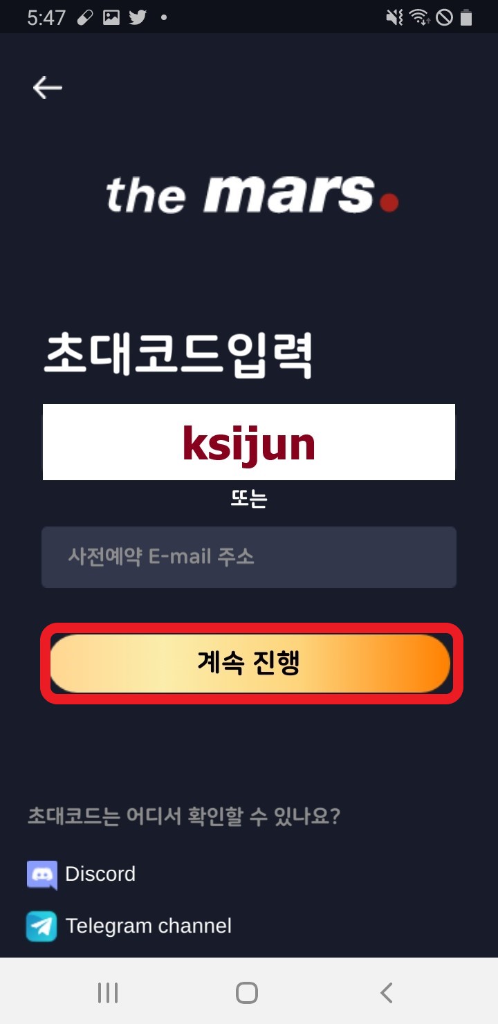 가입 시 초대 코드를 기입하지 않으면 "마르스 마이닝 앱"에 가입할 수 없습니다.