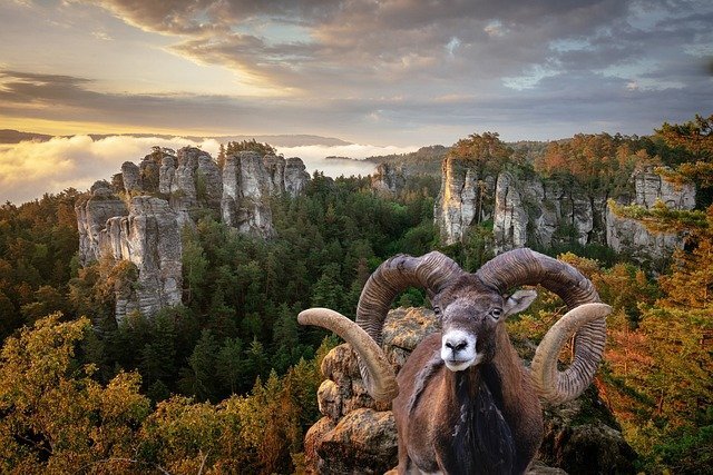 그래서 산양이 산비탈 위로 풀을 뜯으러 올라가면