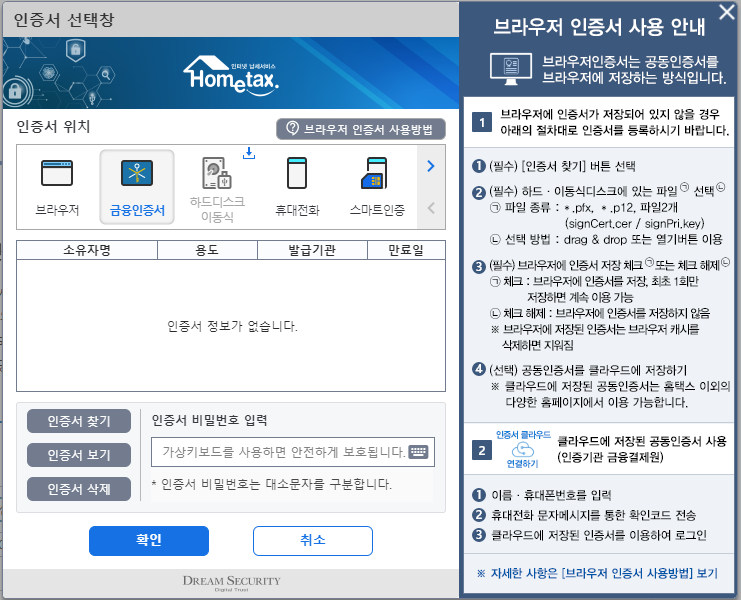 인증하고 나면 다음과 같은 안내문이 나타나면 읽은 후 닫기를 클릭합니다