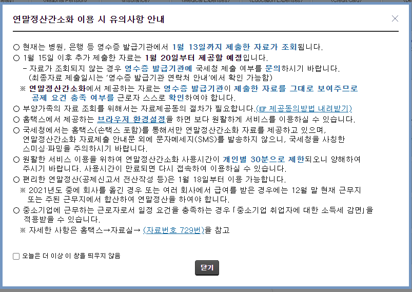 연말정산 간소화서비스가 15일부터 시작되었습니다.