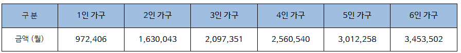 <2022년 가구별 교육급여 선정기준(기준 중위소득 50% 이하)>